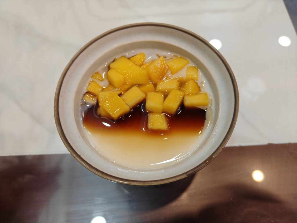 在这边逛了逛,晚上吃了个煲仔饭,这个煲仔饭真服了,就几皮白菜腊肠还有几片腊肉,就敢卖我20。我看成本都不一定能有五块钱。晚上随便走了走又点了个十三的芒果黑糖豆花。还行,挺甜的,豆味也挺足。